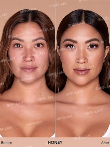 SHEGLAM - كريم أساس سائل يخفي العيوب سكينفينيت من شيجلام، تغطية رطبة خالية من العيوب للمسام غير المرئية، كريم أساس سائل ناعم غير دهني، لون عسلي