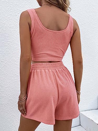 SHEIN - طقم ملابس حريمي مكون من قطعتين مكون من توب كات منسوج سادة وشورت بدون اكمام, داستي بينك, L
