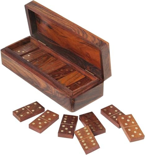 Generic - طقم دومينو خشب شيشام هاند ميد مطعم بالنحاس مع علبة تخزين فاخرة لعبة طاولة كلاسيكية بلمسة ديكور أنيقة للبيت والمكتب