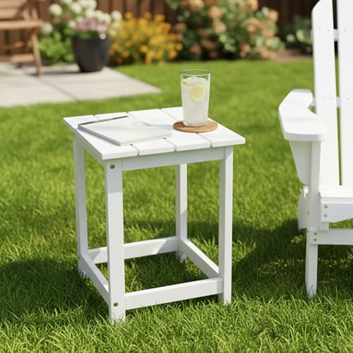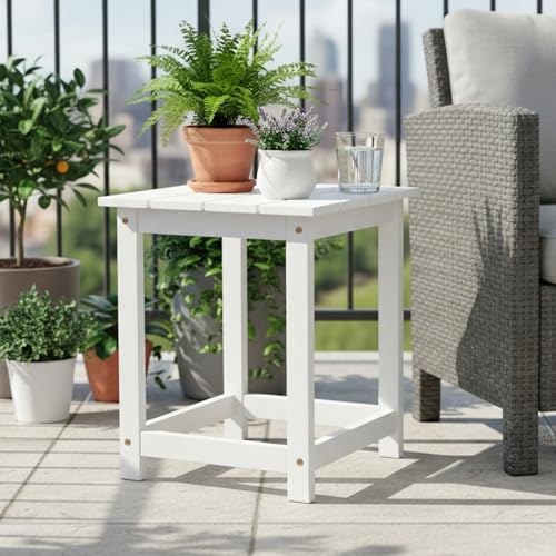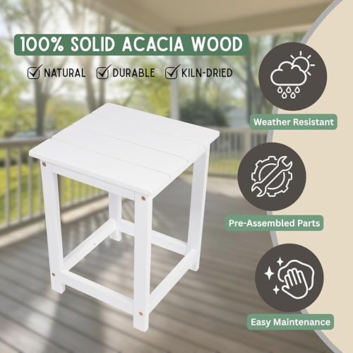 SHINE - شاين طاولة جانبية من خشب الاكاسيا الحديثة، طاولة جانبية اديرونداك للاستخدام الداخلي والخارجي، لون ابيض من كومباني