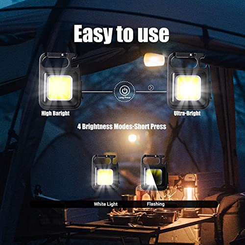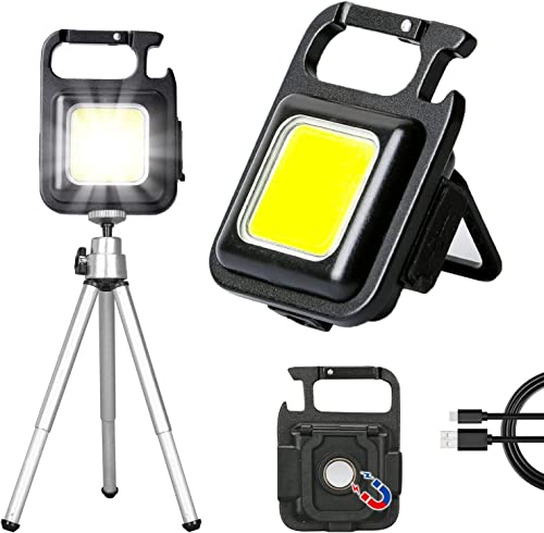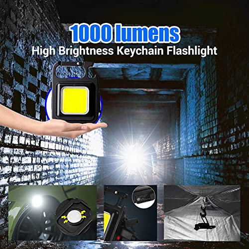 SHOPOGENIX - كشاف اضاءة LED يدوي صغير محمول سي او بي للجيب قابل لاعادة الشحن بسطوع 1000 لومن و4 اوضاع اضاءة وبسلسلة مفاتيح وحامل قابل للطي وفتاحة زجاجات على شكل قوس وقاعدة مغناطيسية للصيد من شوبوجينيكس