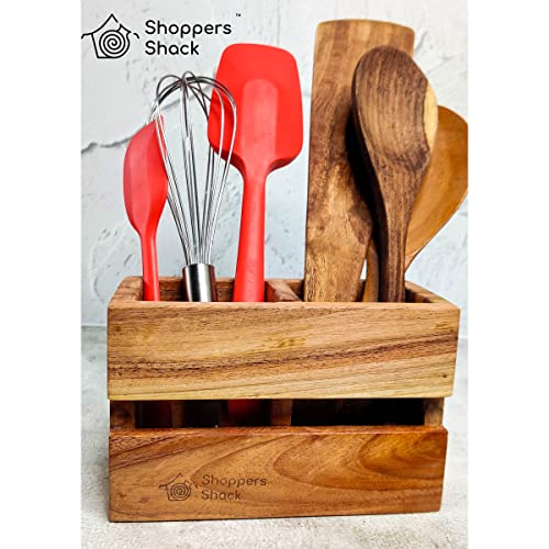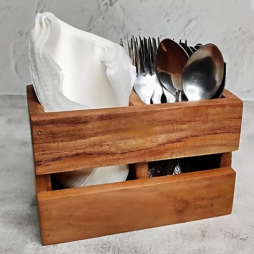 Shoppers Shack - حامل ادوات مائدة خشبي للمطبخ وطاولة الطعام من شوبرز شاك | ملاعق متعددة الاغراض | انيقة للشوك والسكاكين والمناديل الورقية | منظم طاولة للمنزل والمكتب والمقهى والمطعم
