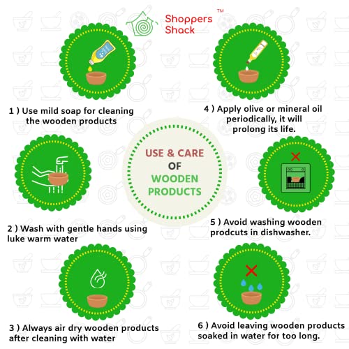 - تعليمات العناية - هذا المنتج غير مناسب لغسالة الصحون. للتنظيف، امسحها بقطعة قماش مبللة. لا تسمح للمنتجات الخشبية بالنقع في الماء. افركها بزيت الزيتون أو الزيت النباتي لمنع الخشب من الجفاف والتشقق.