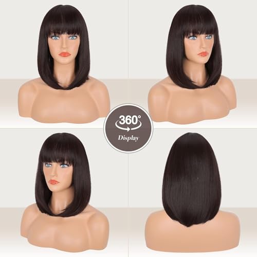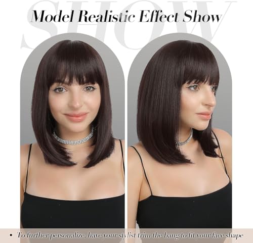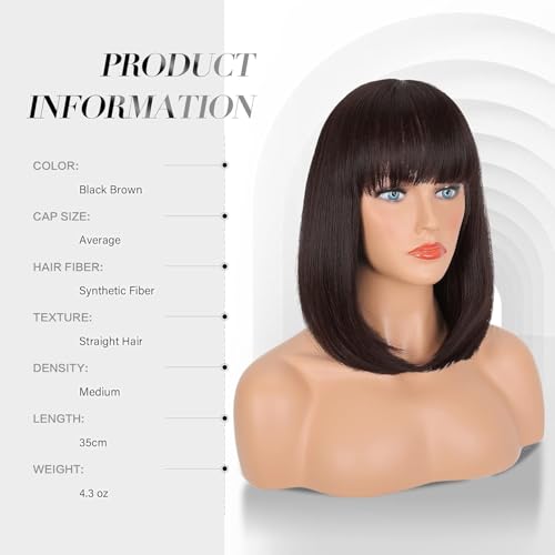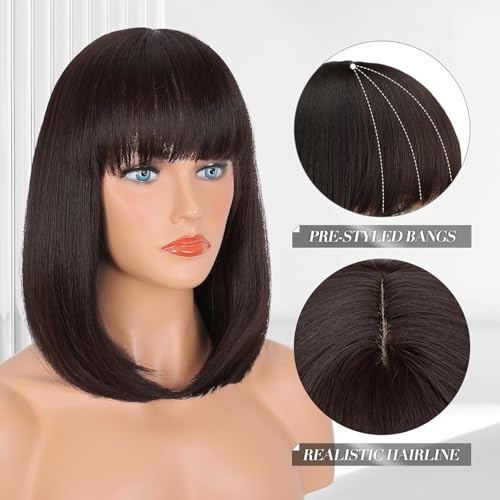 Generic - باروكة صناعية موديل JW53-6 قصيرة بقصة بوب مستقيمة بطبقات للنساء بكثافة 180% وطول 28 سم إلى 32 سم، لون بني
