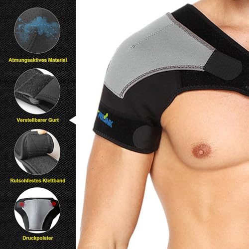 TRILINK - دعامة الكتف من تريلينك - مع وسادة ضغط لألم العضلة الوترية وتخفيف آلام والتمزق والالتهاب الكيسي والتهاب الأوتار - كم للكتف النيوبرين - للجهة اليسرى يستخدم لتصحيح القوام مقاس واحد