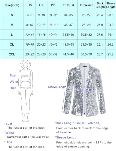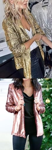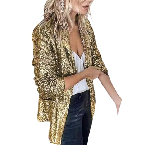 SHOWDAY - جاكيت بليزر نسائي لامع مفتوح من الأمام مزين بالترتر من شو داي، للحفلات المسائية بأكمام طويلة وتصميم رفيع وعصري، مقاس ضخم