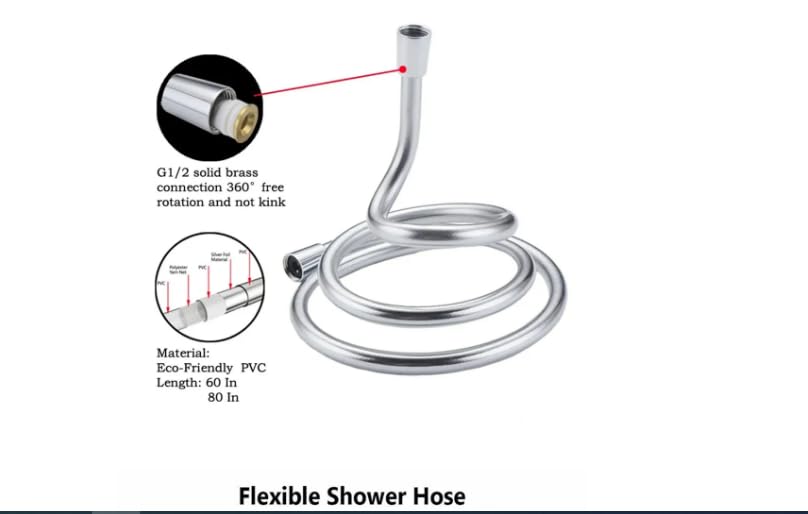 Generic - خرطوم دوش مرن جدا -طويل مصنوع من مادة pvc مضاد للانفجار والتشباك يتحمل ضغط مياه حتي 10 بار صمولة نحاس دوران 360 درجة anty twist((150cm)
