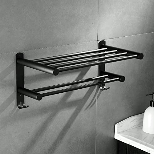 SHUNLI - رف مناشف حمام أسود مع حامل منشفة مزدوج مع خطاف منشفة، SUS304 من شونلي من الستانلس ستيل