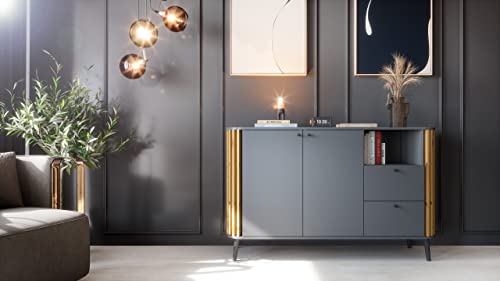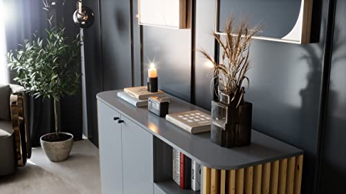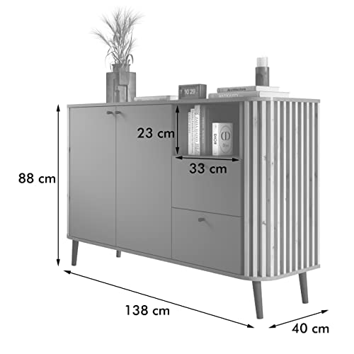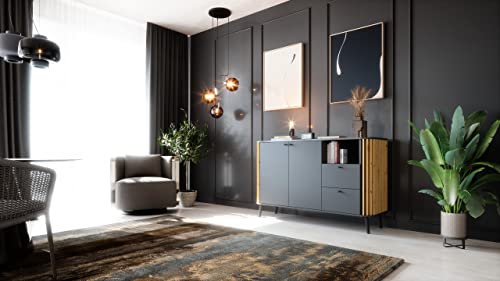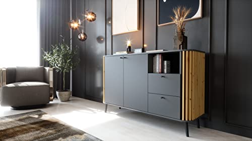 Newroom - دولاب جانبي أنيق بلون رمادي من خشب البلوط البري - 138 × 88 × 40 سم (العرض × الارتفاع × العمق) من زاك تو لغرفة المعيشة وغرفة النوم والرواق وغرفة الطعام