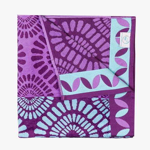 Signoola - منشفة شاطئ من القطن الفاخر من سيجنولا تجمع بين الراحة الفاخرة والاداء العملي مقاس 90 × 170 سم - اصدار دائري بلون موف