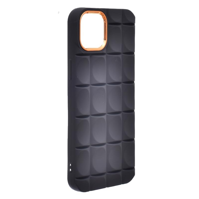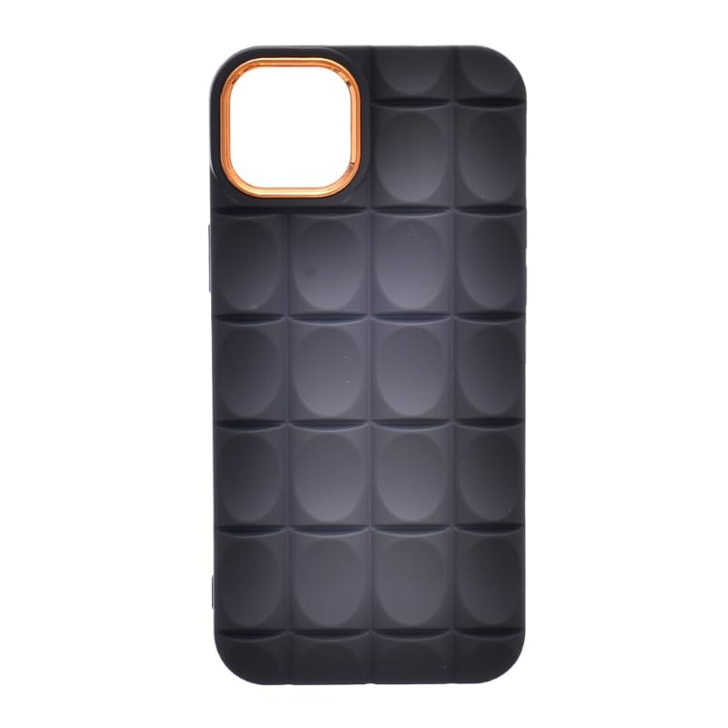 Generic - حافظة حماية خلفية من السيليكون بتصميم مضلع وحواف لموبايل آيفون 14 بلس أسود وذهبي ايفون13 -، لايفون13/14