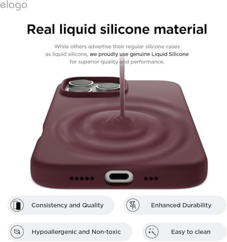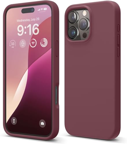 Generic - جراب سيليكون متوافق مع موبايل آيفون 16 برو ماكس 6.7 بوصة، مصنوع من جل السيليكون الناعم، جراب مضاد للصدمات بلمسة نهائية غير لامعة مع بطانة داخلية من القماش (لون بورجندي)