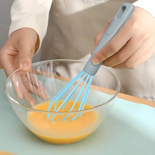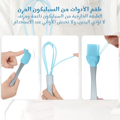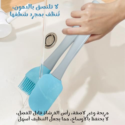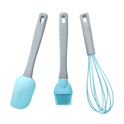 Generic - طقم أدوات طهي سيليكون مكون من 3 قطع (ملعقة سباتولا/ مضرب بيض/ فرشاة) بمقبض بلاستيك وتصميم مقاوم للحرارة والالتصاق للخبز والطبخ والتقليب والخلط، أزرق فاتح