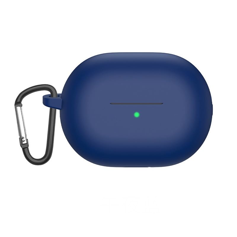 STRAID - جراب سيليكون متوافق مع سماعات هواوي فري بادز برو 3/ برو 4: غطاء حماية من السيليكون الممتاز مضاد للصدمات مع منفذ شحن باللمس يمكن الوصول إليه، مصباح LED امامي مرئي مع سلسلة مفاتيح (ازرق داكن)