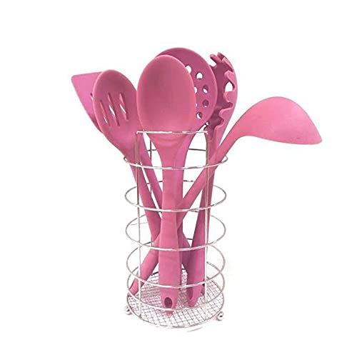 Other - طقم توزيع سيليكون بحامل استانليس 7 قطع - زهري