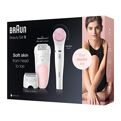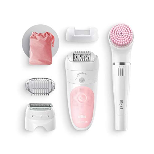 Braun - ماكينة ازالة الشعر سيلك ابيل للعناية بالجمال 5/885 BS، مجموعة مكونة من 5 قطع لازالة الشعر للاستخدام المبلل والجاف مع 3 رؤوس اضافية متضمنة من براون فيس سبا .