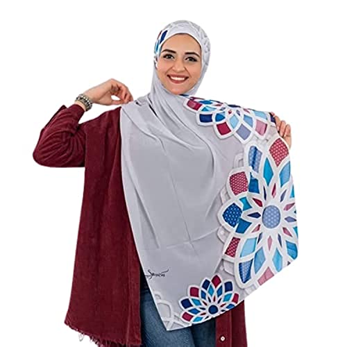 Generic - سكارف كريب شيفون من سيلكي واي، رمادي وازرق ونبيتي 200 سم×75 سم- 00234, 200 cm*75 cm