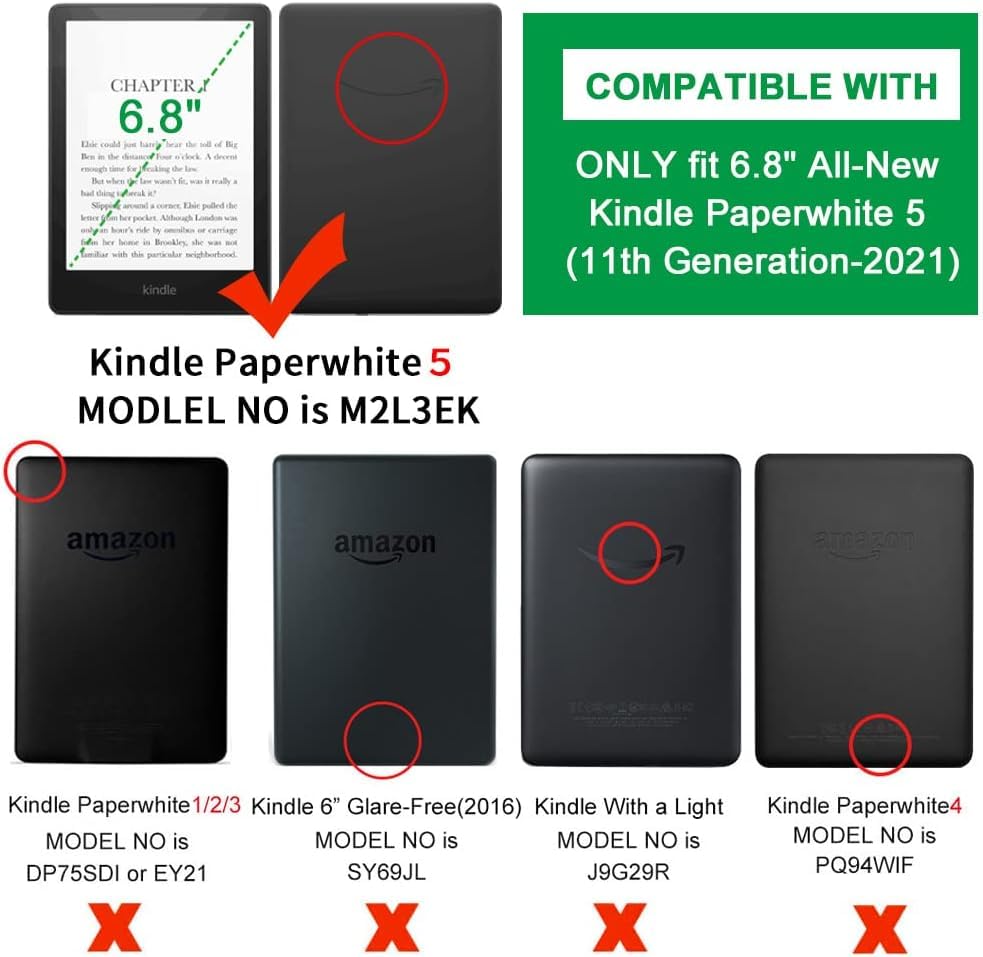 - 【الموديل المتوافق】: متوافق فقط مع جهاز Kindle Paperwhite الجديد كليًا من الجيل الحادي عشر/ إصدار Kindle Paperwhite Signature وKindle Paperwhite Kids Edition (6.8 انش - الجيل الحادي عشر فقط). (لا يناسب الجيل السابق من أجهزة Kindle Paperwhite مقاس 6 بوصة).