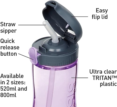 Sistema - زجاجة مياه هايدريت كويك فليب | 800 مل | خالية من مادة بيسفينول أ مع شفاطة من سيستيما - أرجواني