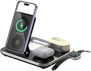 Generic - قاعدة شحن لاسلكية SK-R12 قابلة للطي 3 في 1، بقدرة 15 وات كحد أقصى مناسبة للموبايلات المحمولة والساعات الذكية وسماعات الرأس بإضاءة ليلية