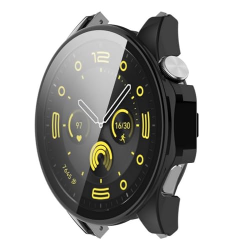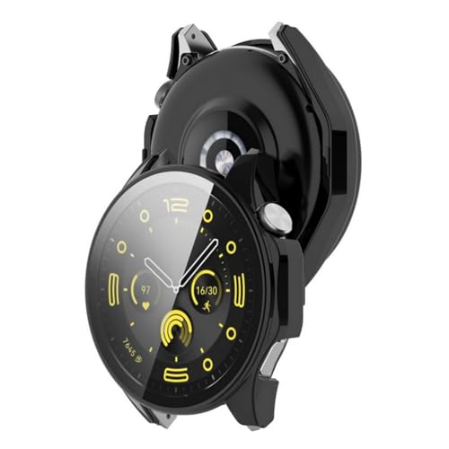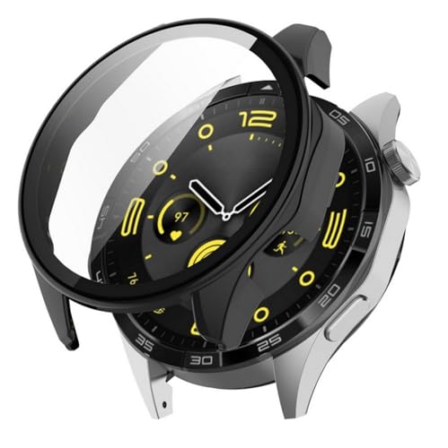 SKEIDO - سكيدو جراب من البولي كربونات + زجاج مقوى لساعة هواوي جي تي 4 حماية مدمج للحماية السقوط 46 ملم اسود