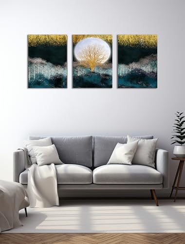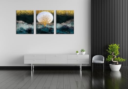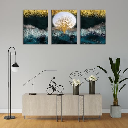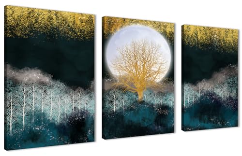 Skills - لوحات فنية جدارية حديثة تصور مشهدًا ليليًا ساحرًا تحت ضوء القمر- تعلق على الحائط لتزيين غرفة المعيشة وغرفة النوم وديكورات المكتب وغيرها - مقاس (30 سم × 40 سم × 3 قطع) من سكيلز