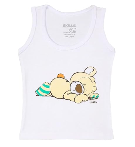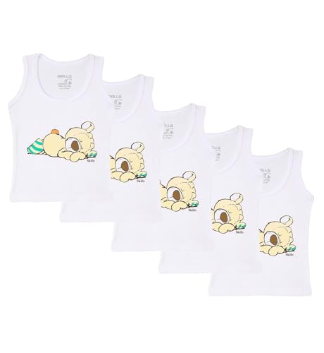 Skills - سكيلز طقم فانلة داخلية بدون اكمام برقبة دائرية مطبوع عليها دب نائم للجنسين من 5 قطع