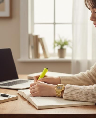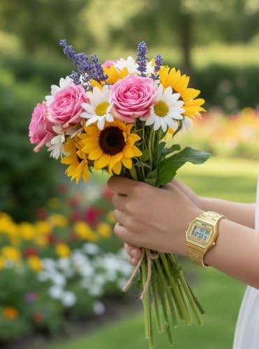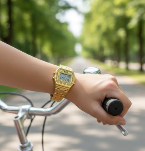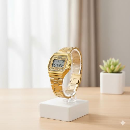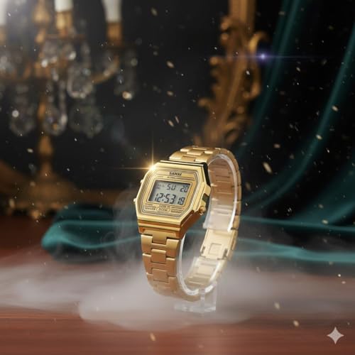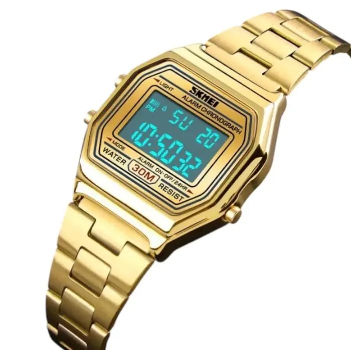 SKMEI - SKMEI 1415 ساعة رقمية نسائية، استانلس ستيل، تصميم مستطيل، مقاومة للماء 3ATM، ذهبي