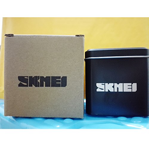 SKMEI - ساعة من سكماي للرجال، بمينا سوداء، عرض إل إي دي، رياضية عسكرية مع منبه وتقويم