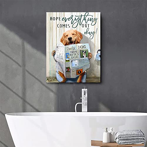 Fchen art - لوحة فنية من القماش مع إطار خشب بتصميم مضحك لكلب جولدن ريتريفر يبتسم ويقرأ جريدة واقتباسات عن الأمل للحمام وغرفة النوم وديكور الحائط مقاس 40.64 × 60.96 سم من سكاي ارت، متعدد الألوان