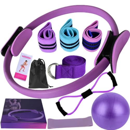 SLEEPHEAD - مجموعة حلقة البيلاتس للنساء للاستخدام المنزلي، تتضمن حلقة بيلاتس سحرية وأربطة مقاومة لتمارين الأرداف، وكرة يوجا، وأربطة يوجا للتمدد من سليب هيد® المكونة من 11 قطعة