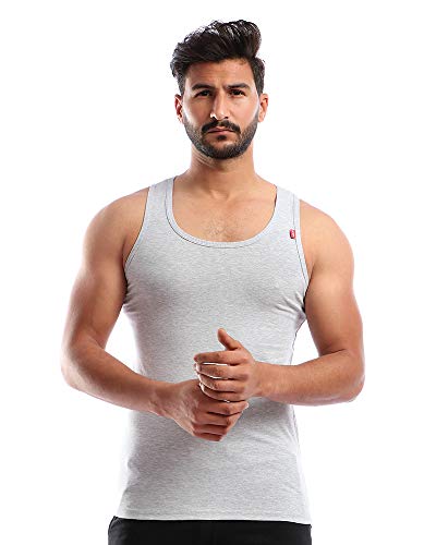 Cottonil - فانلة قطنية مرنة بدون اكمام - رمادية، من قطونيل الرجال