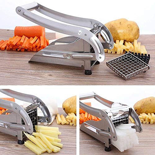 - قطاعة بطاطس مع قواطع قابلة للتبديل للرقائق المصنوعة منزليًا وأقدام مطاطية غير قابلة للانزلاق وأجزاء قابلة للإزالة لسهولة التنظيف، شفرات تقطيع رائعة تقطع البطاطس والخضروات الأخرى بسهولة، مقبض مريح وحامل كبير مصنوع من الستانلس ستيل للاستخدام لفترة طويلة.