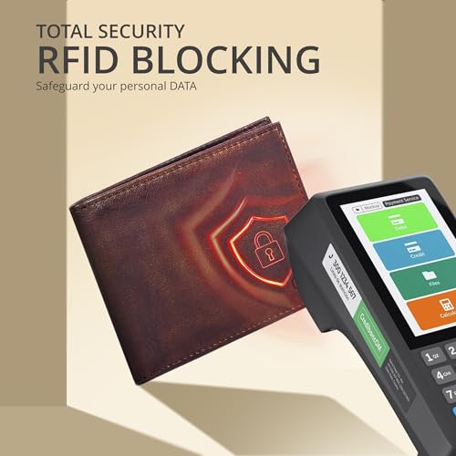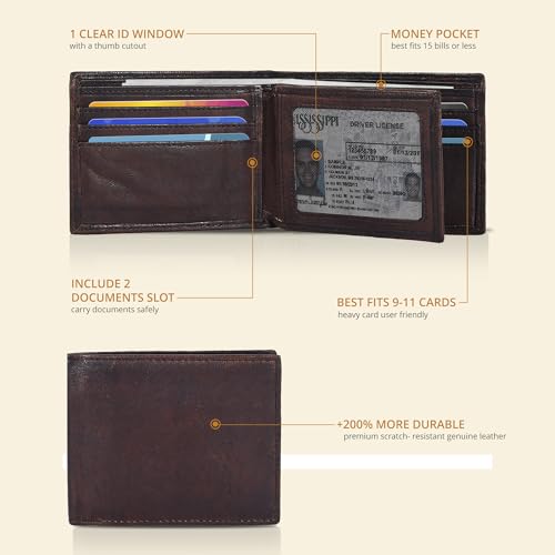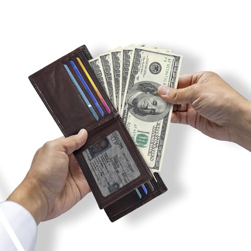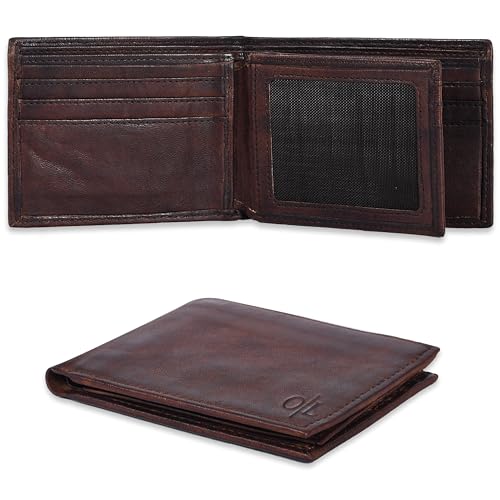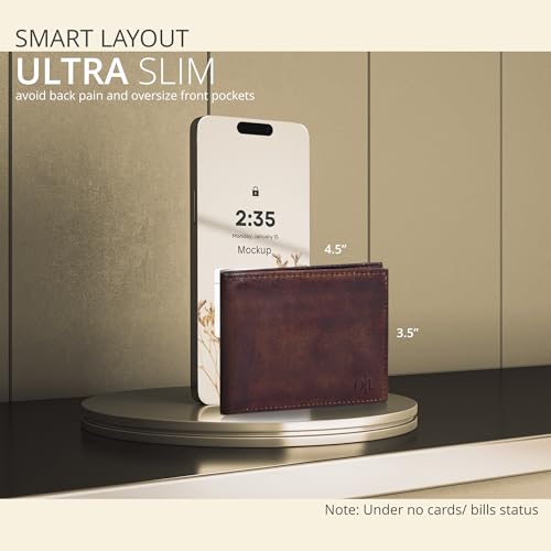 Oak Leathers - محفظة رفيعة بتقنية تحديد الهوية بموجات الراديو للرجال - محفظة ثنائية الطي من الجلد الطبيعي بجيب امامي