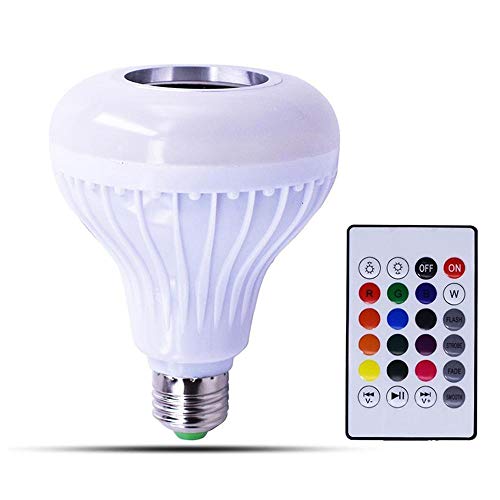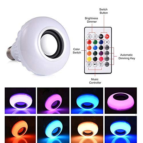 Spaceshoop - مكبر صوت ذكي بخاصية البلوتوث 4.0، لتشغيل الموسيقى بتصميم لمبة ومزود باضاءة ليد، لا سلكي، 3.0 واط، ابيض