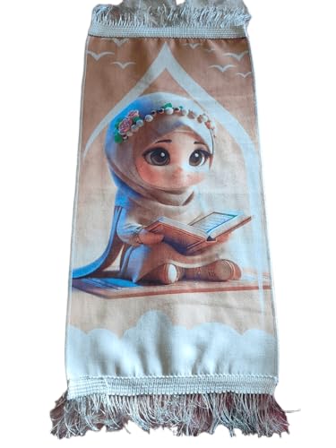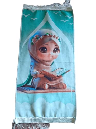 • تصميم إسلامي مميز: سجادة صلاة للأطفال بطباعة عالية الجودة تتميز برسومات جذابة وألوان زاهية تشجع الأطفال على الصلاة