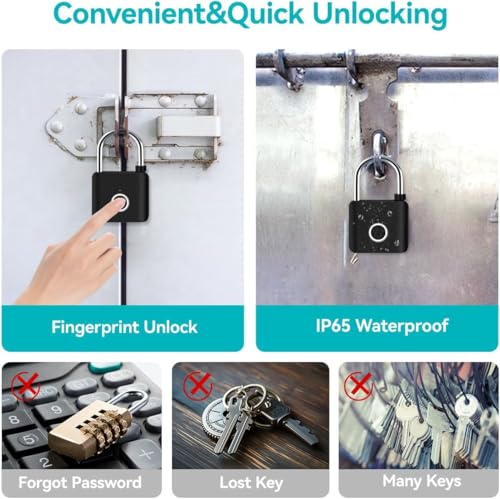 • 【الوصول السريع إلى بصمات الأصابع】 جرب فتح القفل بسرعة البرق في أقل من ثانية مع نظام التعرف على بصمات الأصابع المتقدم، مما يلغي الحاجة إلى المفاتيح أو رموز PIN مع توفير وصول سلس وآمن إلى متعلقاتك الشخصية وتعزيز الراحة للسفر وصالة الألعاب الرياضية والاستخدام اليومي