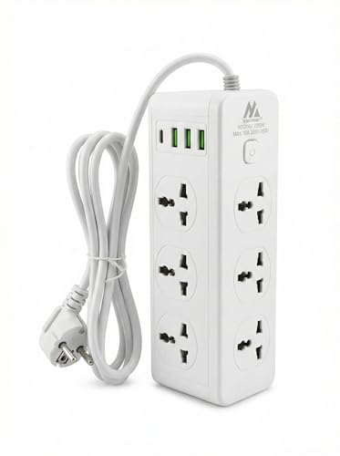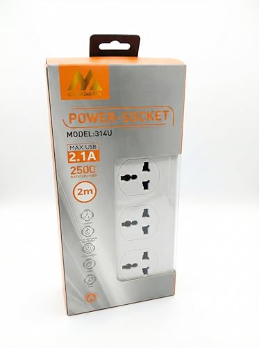Generic - وصلة طاقة ذكية 2500 واط موديل 314U - 6 مقابس، 3 USB، 1 بي دي، 2 متر