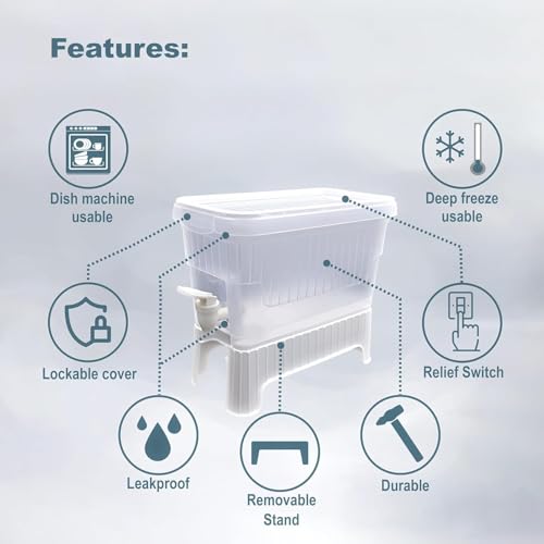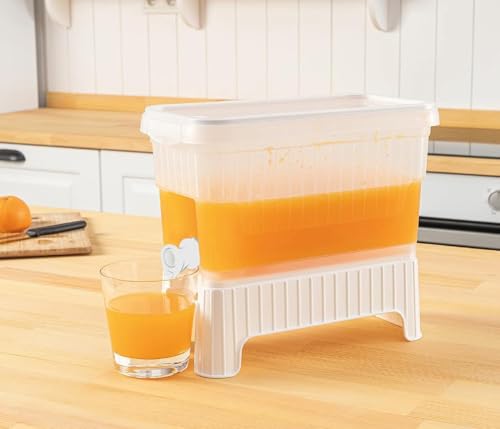 • راحة لا مثيل لها في تقديم المشروبات: تخلص من الفوضى وانسكاب السوائل! ديسبنسر العصير بسعة 4.5 لتر يبقى داخل ثلاجتك جاهزًا للخدمة. يحتوي على صنبور سهل التشغيل يسمح لكل أفراد الأسرة، بما في ذلك الأطفال، بالحصول على عصير بارد أو ماء منعش بلمسة واحدة فقط دون الحاجة لإخراج الوعاء الثقيل، مما يوفر الوقت ويحافظ على برودة المشروب لوقت أطول.