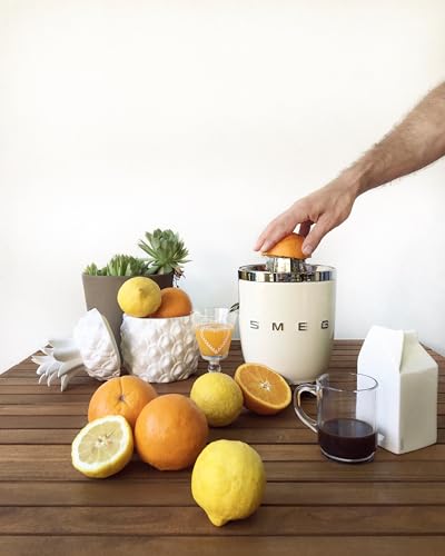 Smeg - عصارة حمضيات CJF11 من سميج - عصارة كهربائية بتصميم كلاسيكي مع مخرطة من الفولاذ المقاوم للصدأ، فوهة بخاصية منع التنقيط وغطاء قبة خالي من البيسفينول أ، سهلة التنظيف، تعمل بلمسة واحدة، لون كريمي