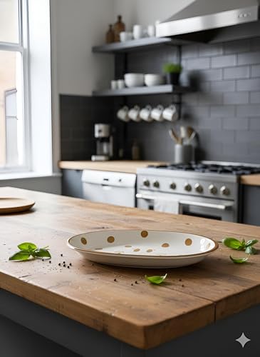 Generic - اطباق سمايل - طقم اطباق انيقة من البورسلين والسيراميك باحجام مختلفة وجوه مبتسمة فريدة لتجربة تناول الطعام الانيقة (سرفيس بيضاوي، مقاس 30 سم)