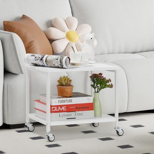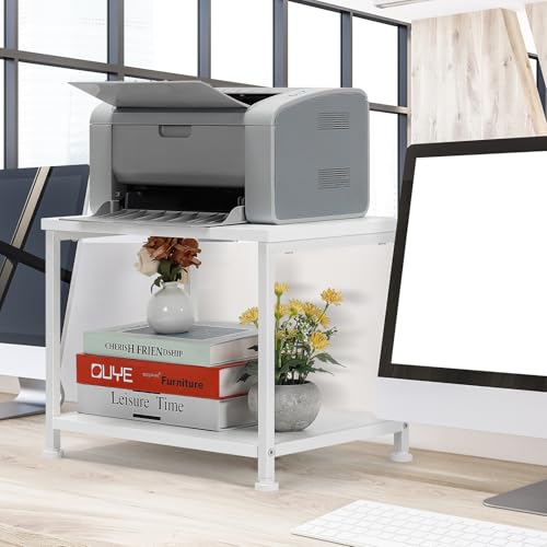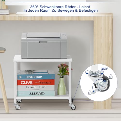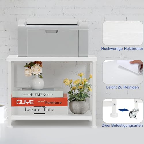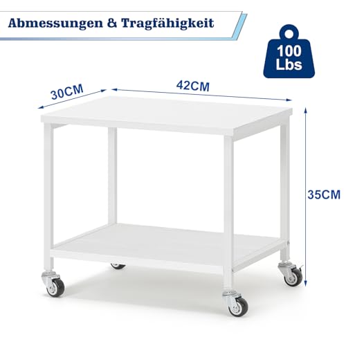 smusei - سموسي حامل طابعة، ابيض، طاولة طابعة من طبقتين مع عجلات، رف مكتب خشبي موفر للمساحة للمكتب والمنزل والمكتب والمدرسة، 42 × 30 × 35 سم