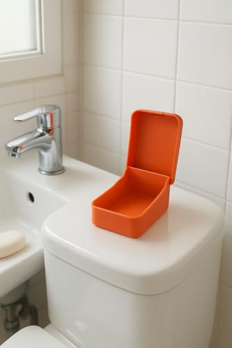 - تصميم عملي: صندوق تخزين برتقالي مع غطاء قابل للفتح، مثالي للحمام أو المكتب