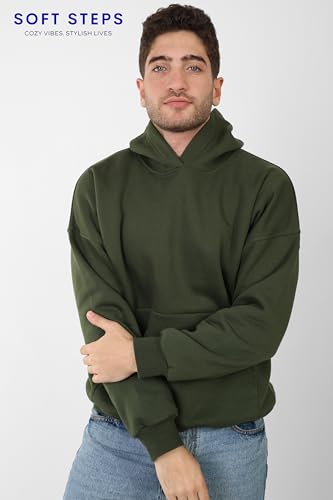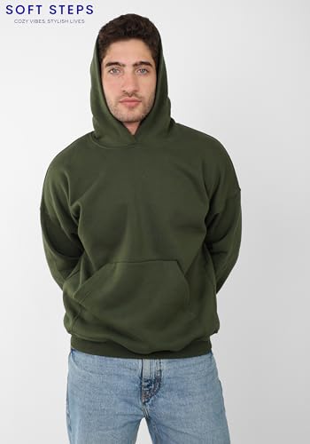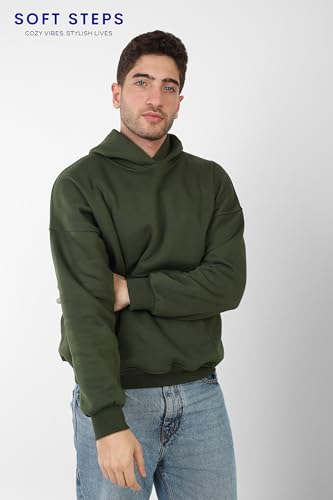 Generic - Soft Steps Cotton Hoodie, Regular Fit, Army Green, Casual Pullover Sweatshirt