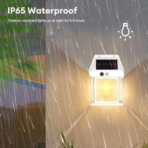 Generic - مصباح حائط خارجي يعمل بالطاقة الشمسية ببطارية 1800 مللي امبير في الساعة مقاوم للماء مع مستشعر حركة وإضاءة دافئة لديكور الحديقة والفناء الخلفي - أبيض
