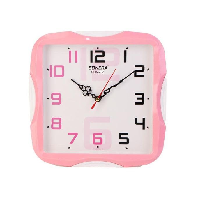 Generic - ساعة حائط سونيرا- 9751- انالوج - وردي - مربعه الشكل