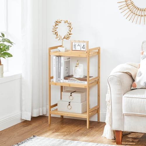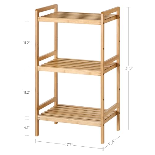 SONGMICS - سونج مايكس رف تخزين من الخيزران 3 طبقات للحمام والمطبخ وغرفة النوم 45 × 31.5 80 سم طبيعي BCB073N01