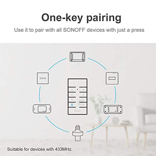 SONOFF - ريموت كونترول بتردد 433 ميجاهيرتز من سونوف متوافق مع اجهزة ار اف 4 قنوات برو 2 بريدج وتي اكس بدون قاعدة - RM433 لمروحة