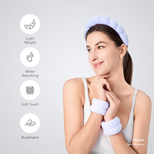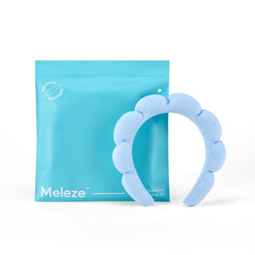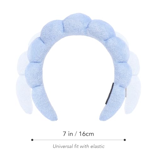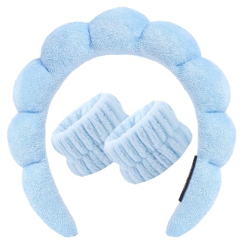 Meleze - شريط راس واساور معصم للنساء والفتيات، شريط شعر لغسل الوجه والعناية بالبشرة، منشفة من قماش تيري اسفنجي ناعم لازالة المكياج، شريط راس فقاعات، اكسسوار شعر سميك غير قابل للانزلاق (ازرق)