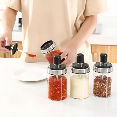 Generic - برطمان توابل زجاجي أنيق مع ملعقة، لتخزين الملح والتوابل والعسل والسكر والسمن لتنظيم المطبخ